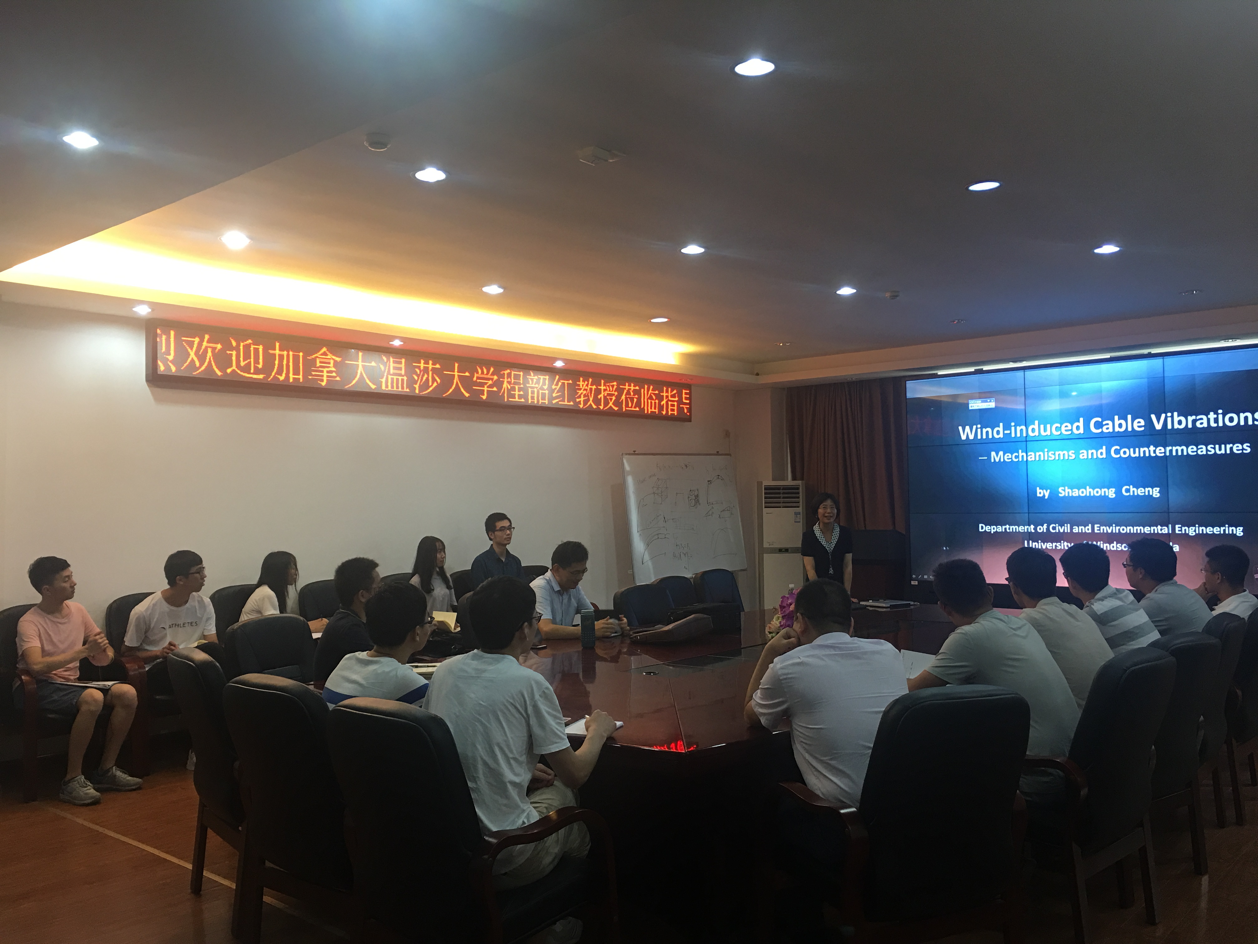 座谈内容:程韶红教授介绍研究团队产学研工作情况,就科研合作以及联合培养学生等问题,与深圳大学土木工程学院相关领导及教师开展讨论,程教授对土木工程学院实验室和学科方向定位、发展与规划提供意见。